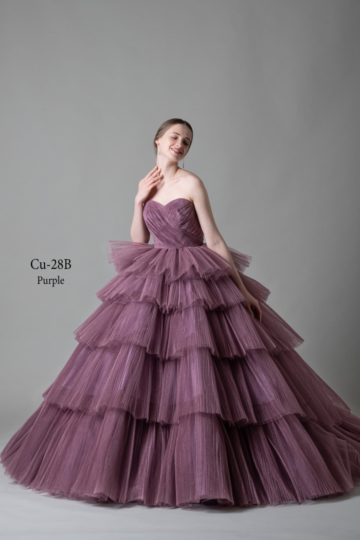 落ち着きのあるパープルカラーは、気品とモダンな個性を併せ持ち、大人の花嫁様にピッタリ。ナイトウエディングやフォトウエディングにも映える、印象的な一着です。