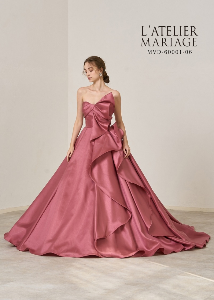 2024.11.26 福岡店 新作ドレスが入荷しました 新作のカラードレスが入荷いたしました♪ ローズピンクの色味が華やかな1着です。 ローズピンクの色が花嫁様のお肌をより美しく引き立てます。 胸元のフリルが上半身を豪華にさせ、重厚感あるタックスカートがより上品さをアップさせる1着です。 現在リズウェディングで試着が可能です。 ぜひご来店お待ちしております。